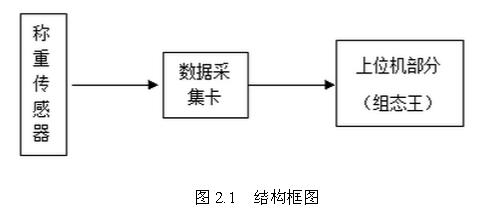 系統(tǒng)由三個(gè)部分組成:稱重傳感器,數(shù)據(jù)采集卡以及上位機(jī)部分,系統(tǒng)的結(jié)構(gòu)框圖如圖2.1所示: