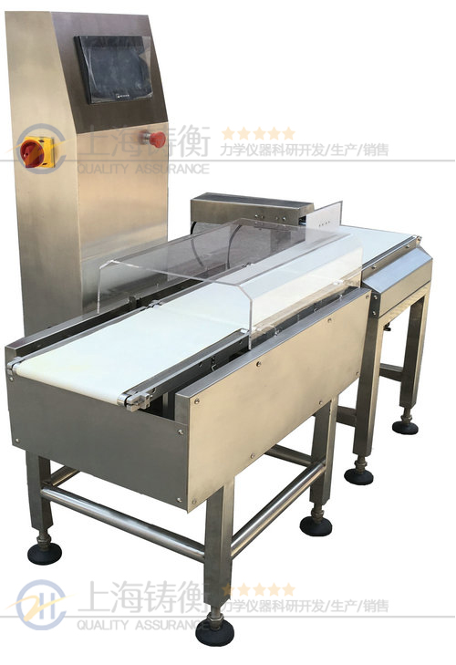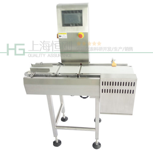 分選秤采用連續動態自動稱重方式檢測物品重量,配以自動剔除機構,從而實現在流水線上的高速、高精度的重量檢測及分選。適用于紙箱包裝產品的裝料短缺檢查。設計獨特的機械結構及操作界面,非常方便使用者操作及數據管理統計。使用時,操作者僅需簡單地將被檢物品的上下限超差值設定后,按下[啟動]按鈕,系統就會進入全自動工作狀態,合格產品通過,不合格品自動剔除。同時在人機界面上全面顯示數量、速度、重量、產品信息、狀態圖形等信息。將該機器用于包裝檢驗,從而實現產品全檢出廠,同時還達到了節省人工的效果。