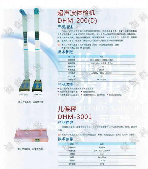 身高體重秤測量:測量身高,采用超聲波測高,無接觸測高,防止交叉感染,適體檢使用,使手動不可比擬的。