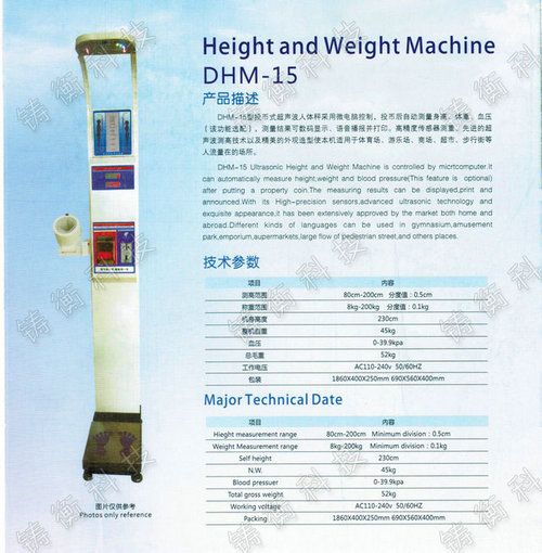 我們公司銷售的 快速測量身高體重標準人體秤,藥店門口投幣體重稱簡稱體重秤,體檢秤。體重秤采用當今國外流行的簡潔、大方、時尚的設計概念,外形新穎,美觀大方,改變了傳統身高體重秤的笨重形象!其外觀豪華,無論您是放在學校、賓館、醫院、洗浴中心、或是酒店,都將會成為一個吸引眼球的新亮點!歡迎對我們公司的體重秤感興趣的客戶隨時點擊這里致電我們銷售進行購買!溫馨提示:因我公司體重秤產品規格參數多樣,想了解體重秤詳情報價的朋友請直接致電公司銷售。