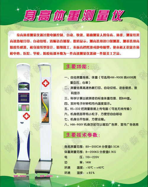 身高體重秤主要參數: